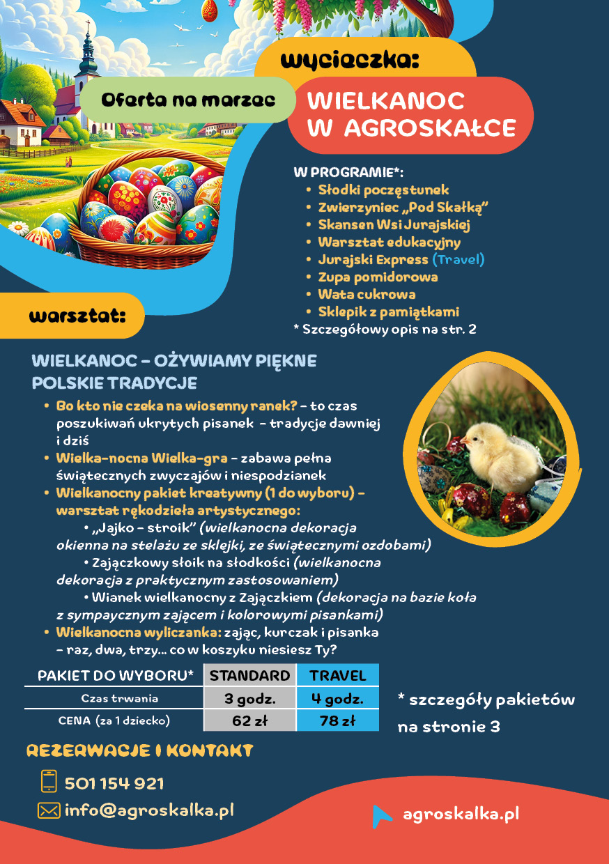 Wielkanoc w Agroskałce. Wycieczki szkolne i przedszkolne | oferta marzec 2026